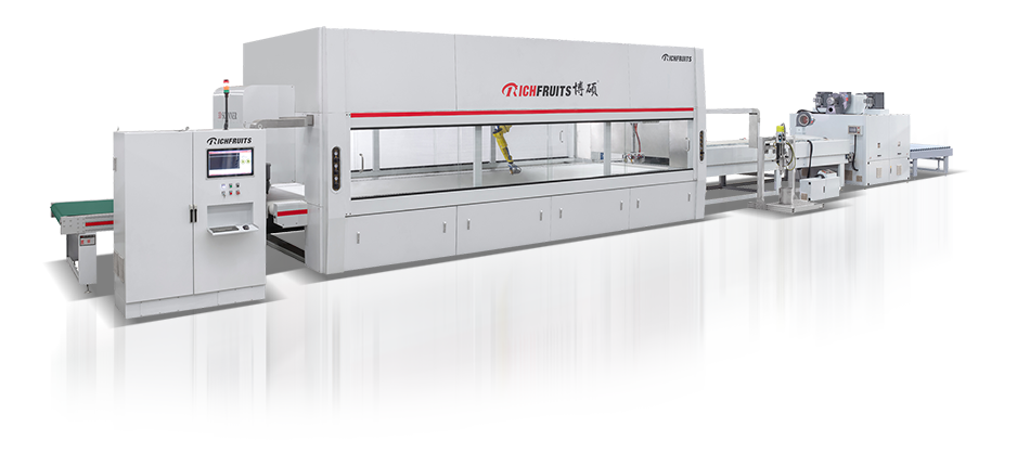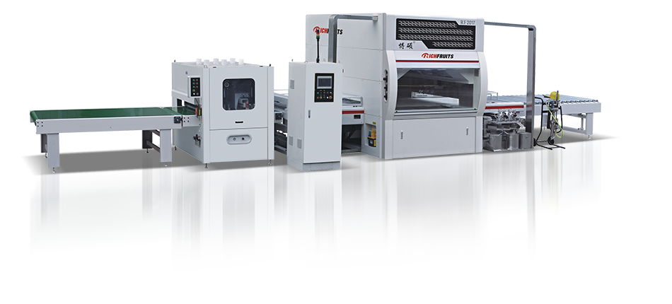 一線兩用組合,多樣化的生產(chǎn)模式。采用自動(dòng)化上下料模式,通用片狀或卷膜材料,適用PET、PETG、EB、PP、PVC、CPL、防火板、亞克力、鋁箔、SPC等飾面材,利用PUR膠水均勻平貼或包覆到板材表面。