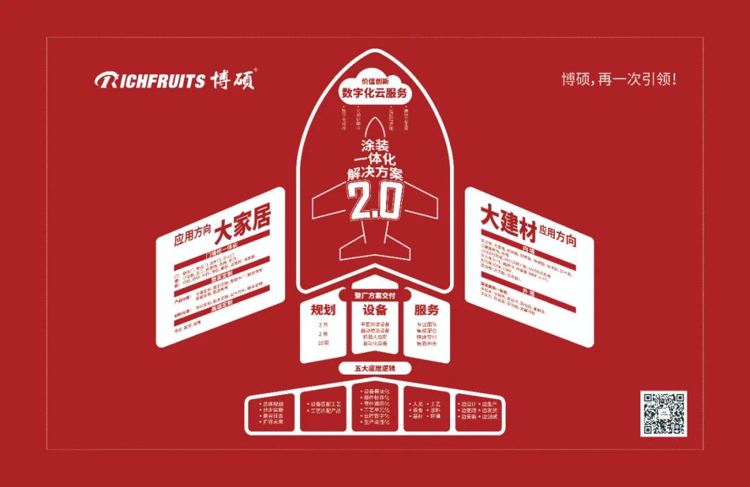 博碩涂裝一體化解決方案2.0主題畫面的中心便是數(shù)字“2.0”,預(yù)示著這是一個(gè)