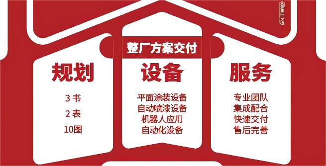 服務(wù)”部分包括博碩團(tuán)隊(duì)的前、中、后期服務(wù),以及集成涂裝工廠必要的,諸如環(huán)保、吸塵、空氣壓縮等輔助設(shè)施及配套設(shè)備等。
