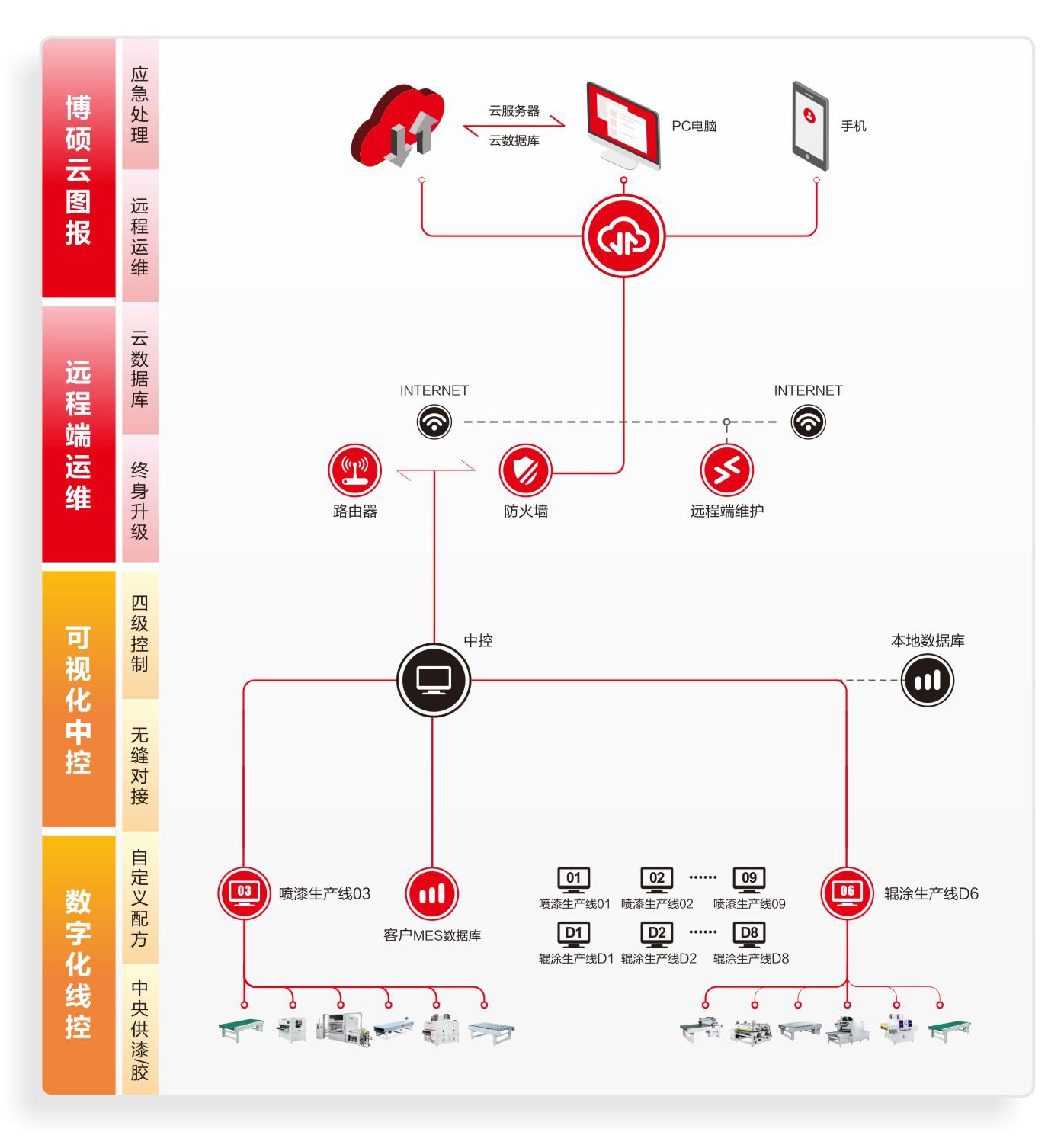 數(shù)字化云服務(wù)”,它包括:數(shù)字化線控、可視化中控、遠(yuǎn)程端運(yùn)維、博碩云圖報(bào),是一整套完整的數(shù)字化、智能化體系。