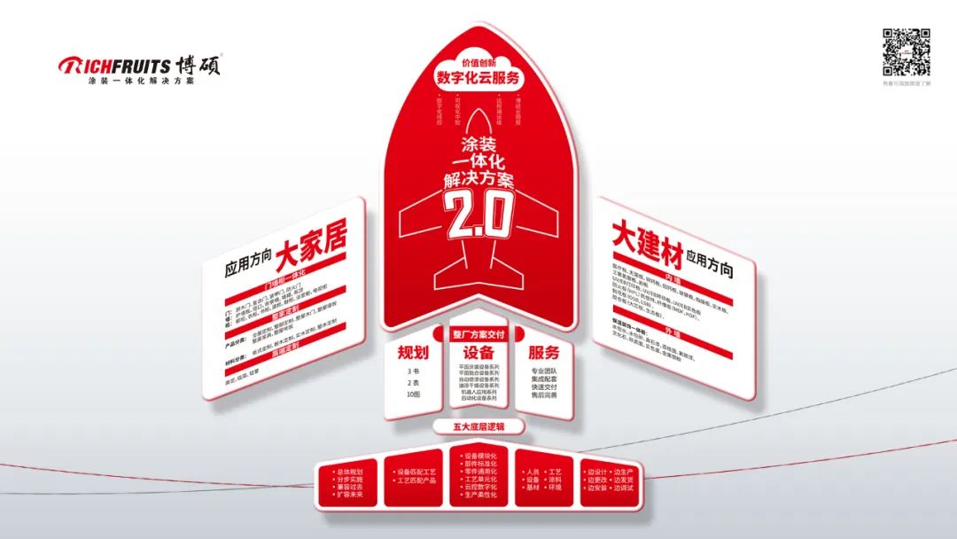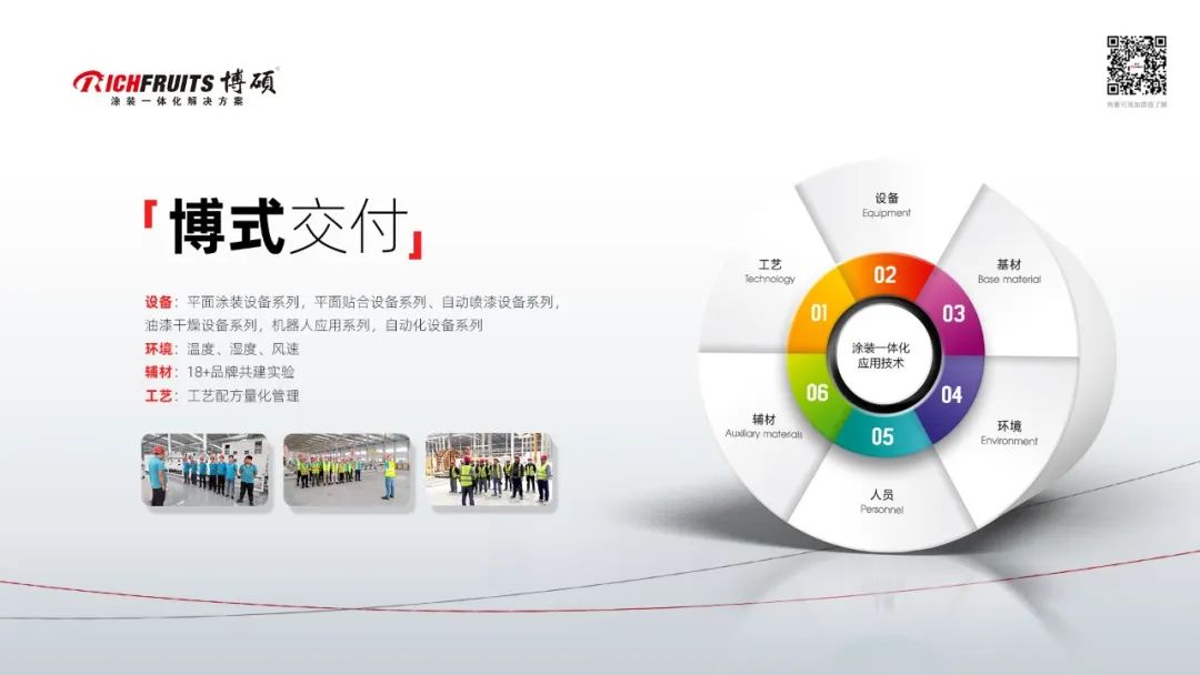 剛才談到三條生產線,實際上買生產線很容易,但要快速做出好產品還要遇到材料、工藝等一系列問題,所以博碩就提出涂裝一體化應用技術六要素:工藝、設備、基材、環境、人員、輔材。今天主題整家化配套,痛點在快速交付,博碩過去20年的經驗積累了大量的工藝參數,形成了工藝配方。量化管理快速出產品,這就是博式交付。